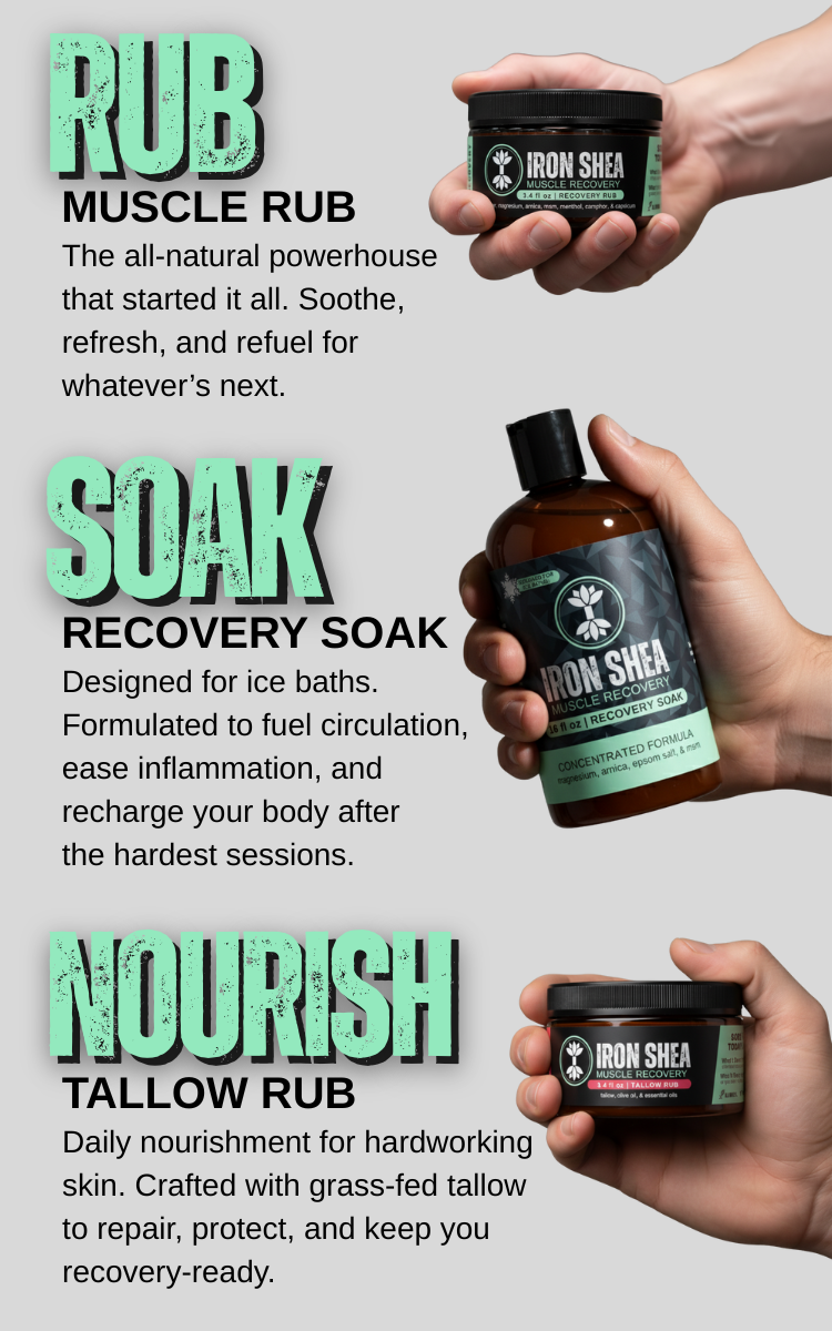 Follow Iron Shea for recovery tips, product drops, and behind-the-scenes content.