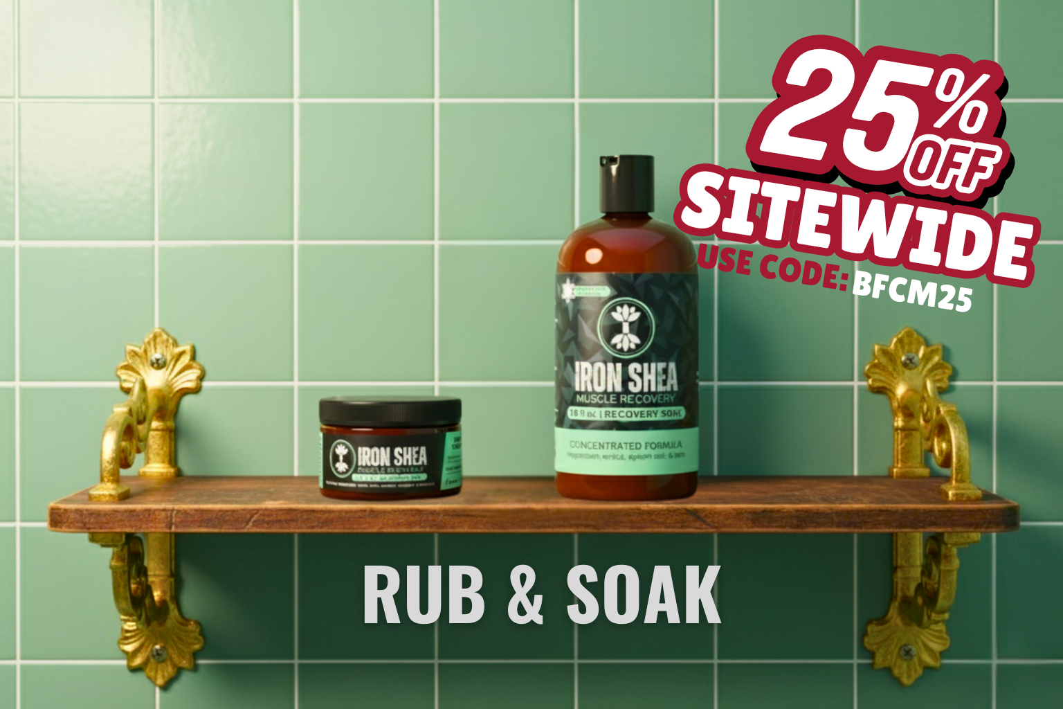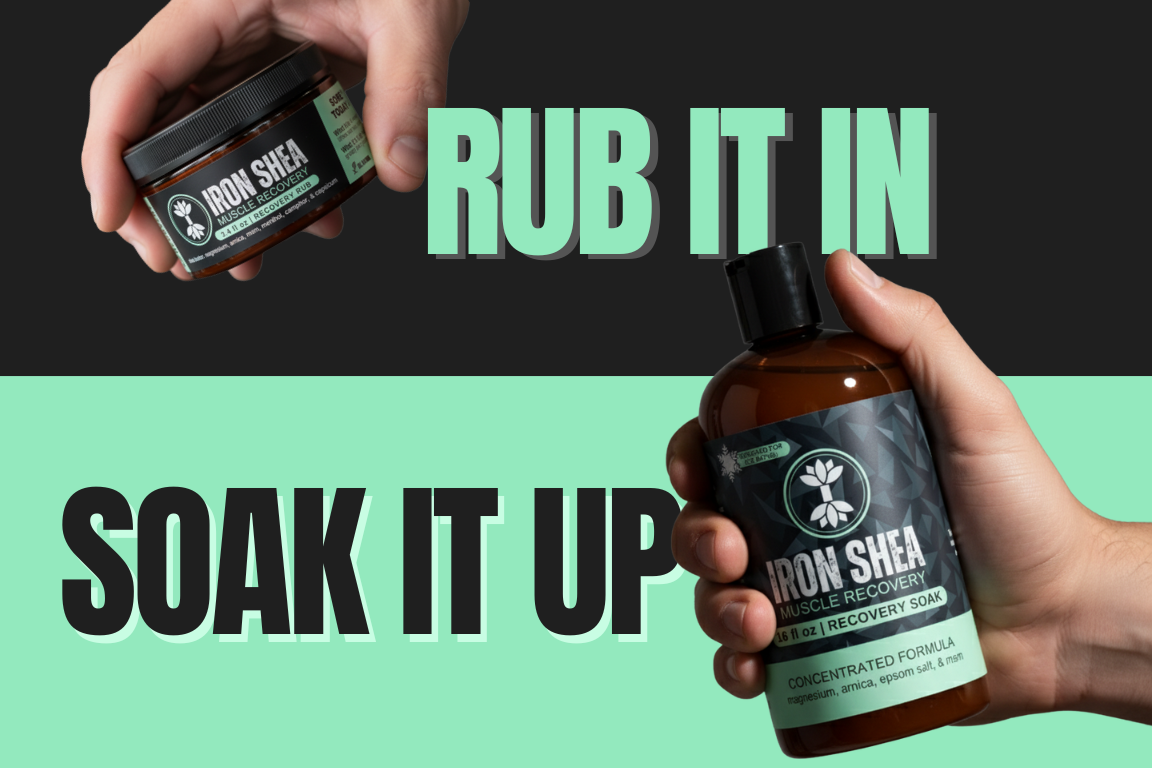 Start with Iron Shea Muscle Rub — your quick-hit recovery ritual. Work it into sore or tight muscles post-grind. It’s like a high-five for your body (minus the awkward eye contact).