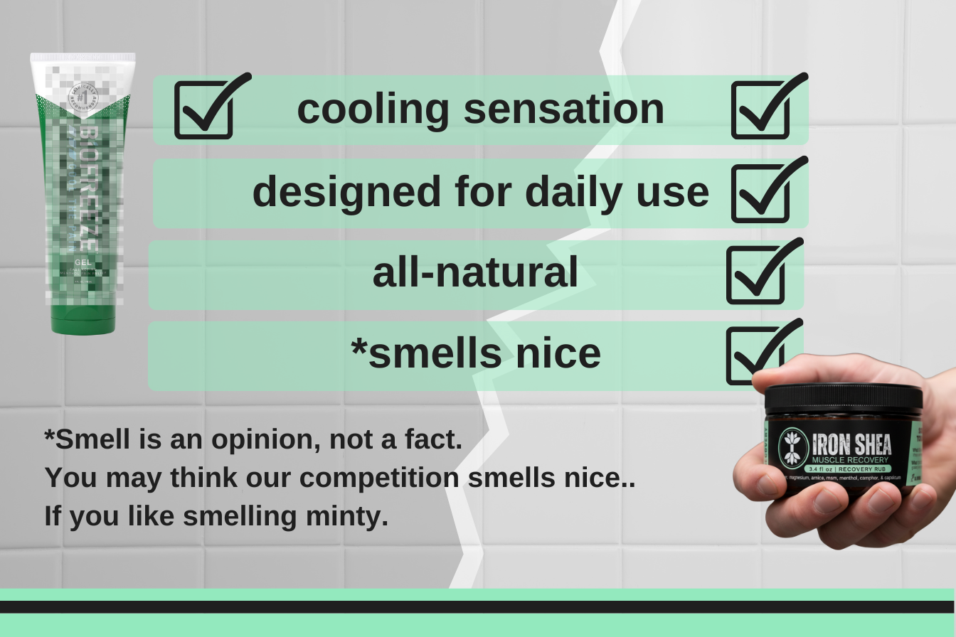 “I’m not a pro athlete. I just try to hit the gym a few times a week. After leg day, my quads are usually toast, but Iron Shea makes a noticeable difference. It feels refreshing and way better than anything else I’ve used.”- Zane K.